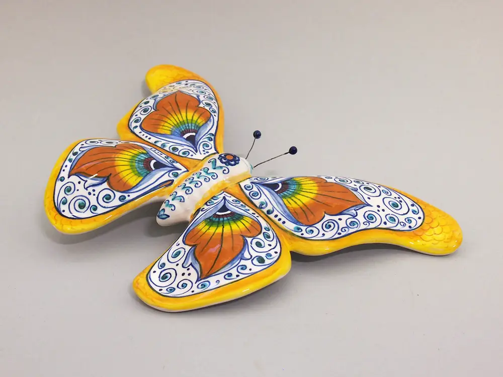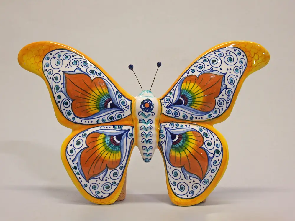 CategoryHand-painted Faenza majolica butterfly with traditional Pavona decoration.