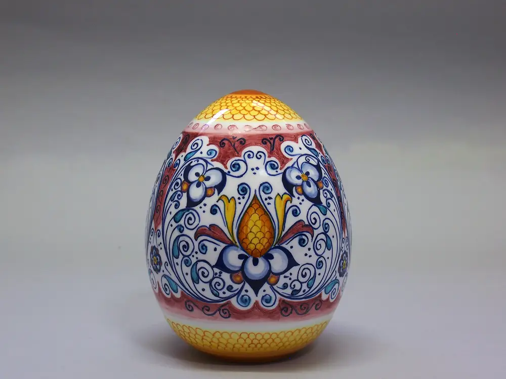 CategoryCeramic egg hand painted with palmettes and delicate colors.