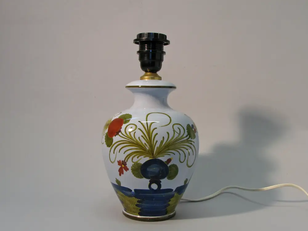 CategoryTabele lamp in artistic pottery of Faenza, hand painted in traditional style Garofano (Carnation).