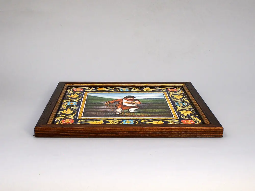 The panel is set in a thin wooden frame, ready to hang on the wall. Size: 23 x 23 cm, thickness 1.2 cm.