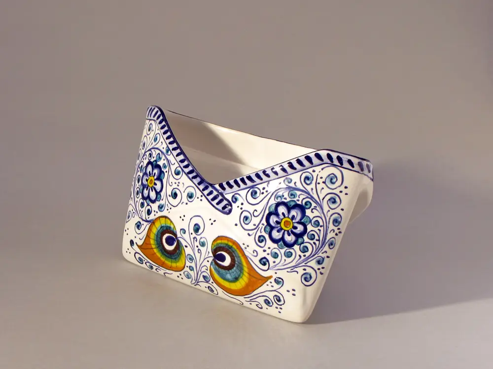 CategoryLetter holder in hand-painted artistic ceramic with traditional “Peacock Feather Eye” decoration.
