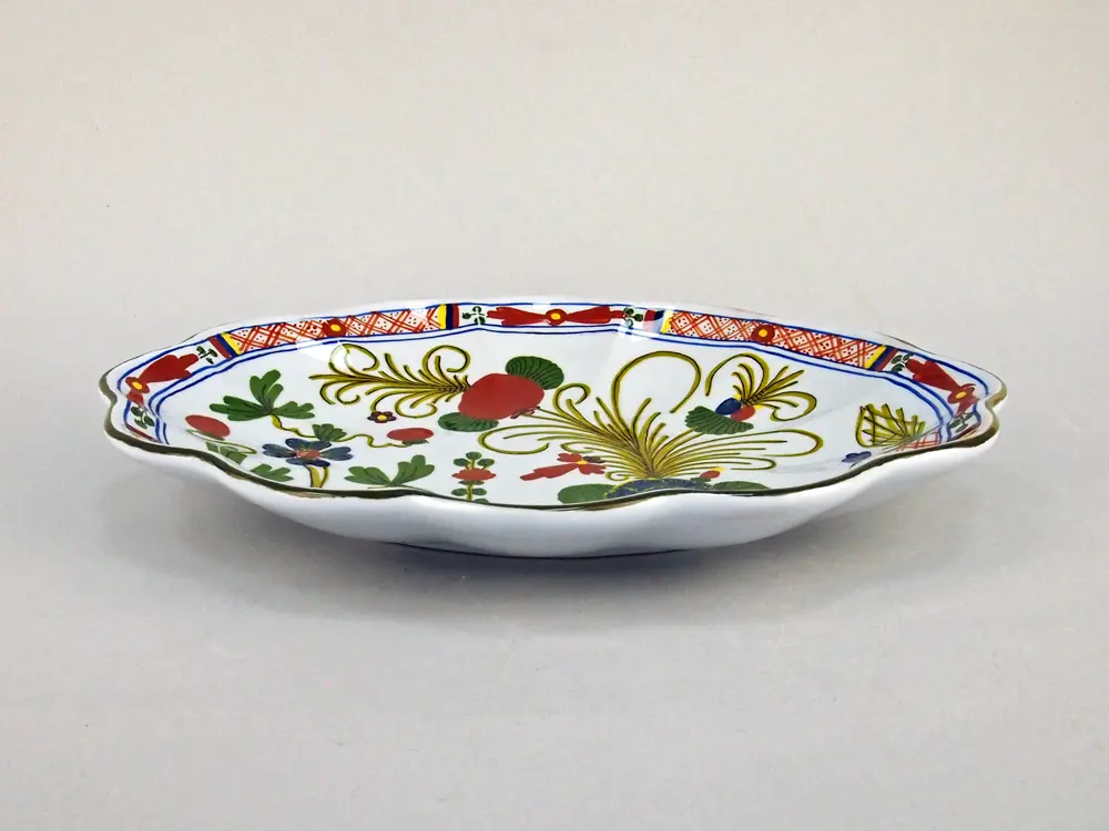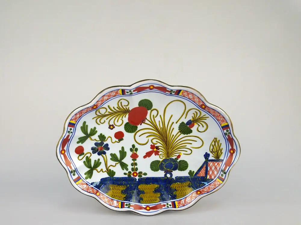 CategorySmall tray with hand-painted scalloped edge featuring traditional Garofano (carnation) decoration.